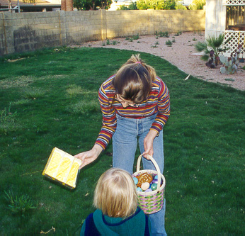Stefanie and Emily finding candy.
